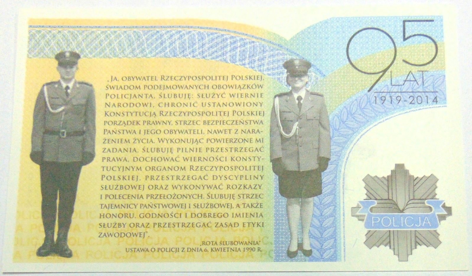 2014 Banknot testowy PWPW POLICJA 95 Lat Policji RZADKI