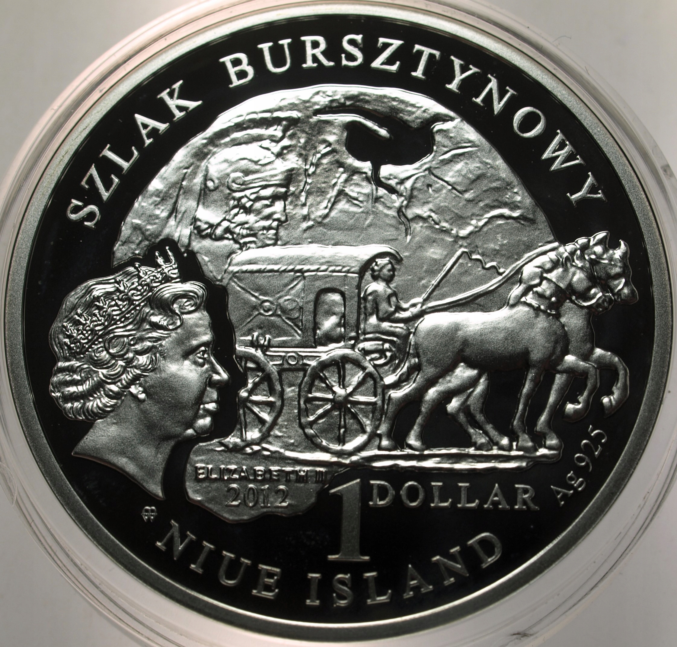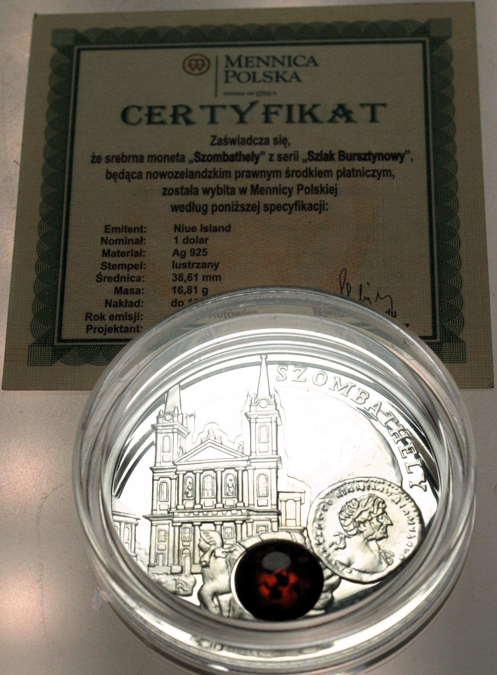 Szlak Bursztynowy 1 dolar Niue 2011 Szombathely LUSTRZANA SREBRO. ORYGINAŁ. SPRAWDŹ INNE AUKCJE - KOLEKCJONUJ RZADKIE WALORY Z NUMIZMATO!