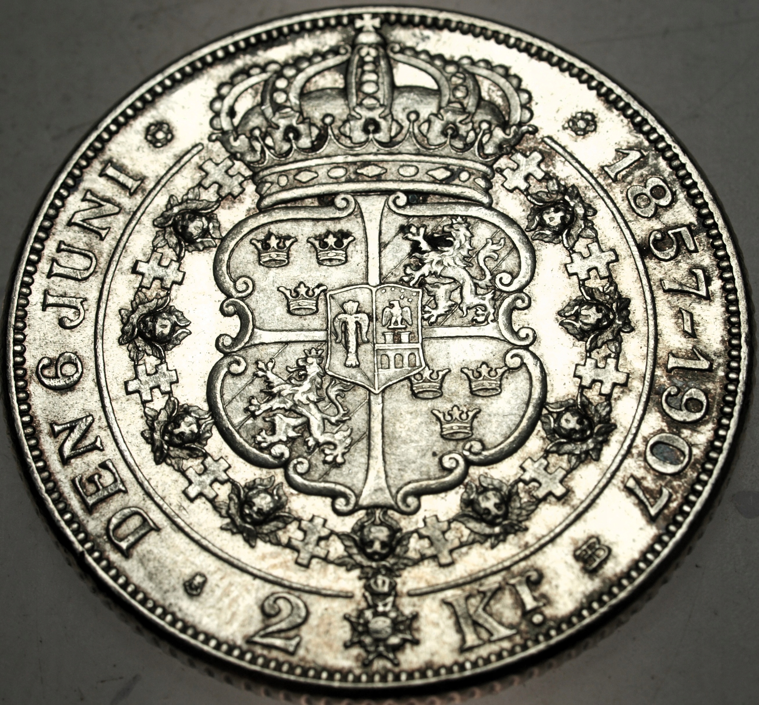 Szwecja 2 korony kronor 1907 Oscar II i Sofia SREBRO. ORYGINAŁ. SPRAWDŹ INNE AUKCJE - KOLEKCJONUJ RZADKIE WALORY Z NUMIZMATO!