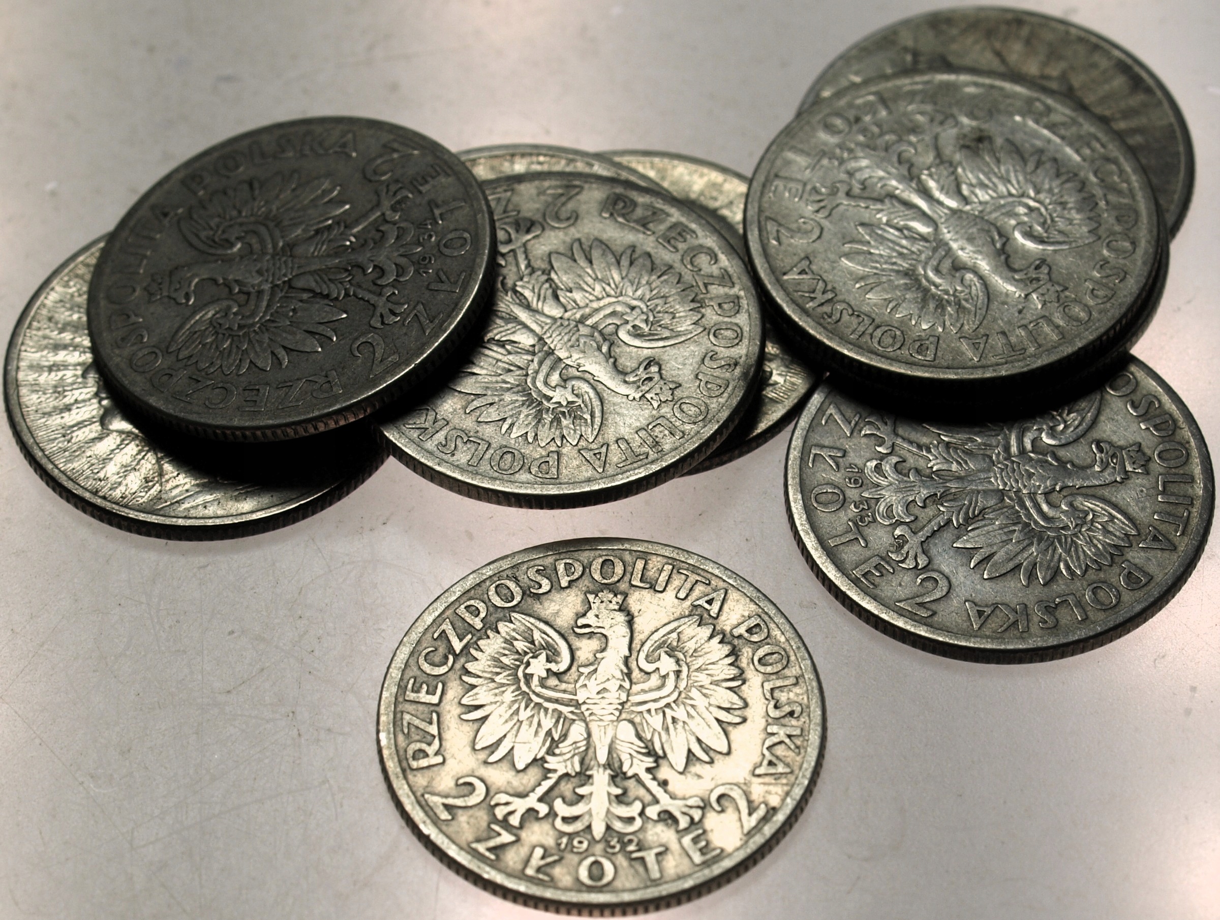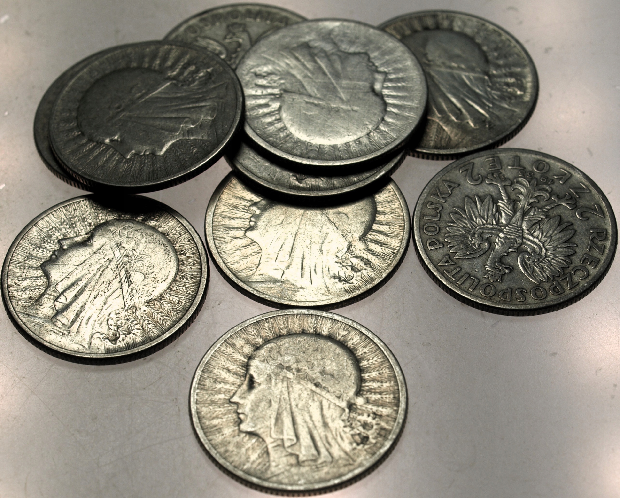 LOT ZESTAW 10 x 2 zł złote Głowa Kobiety Polonia SREBRO. ORYGINAŁ. SPRAWDŹ INNE AUKCJE - KOLEKCJONUJ RZADKIE WALORY Z NUMIZMATO!
