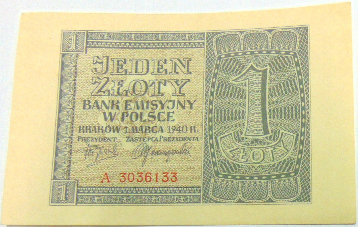 1940 1 zł Jeden Złoty, seria A banknot