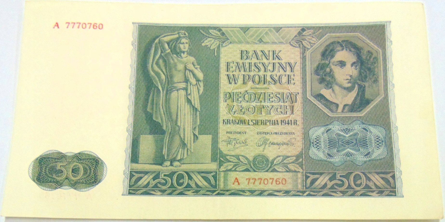 1941 50 zł Pięćdziesiąt Złotych Seria A banknot. ORYGINAŁ. SPRAWDŹ INNE AUKCJE - KOLEKCJONUJ RZADKIE WALORY Z NUMIZMATO!