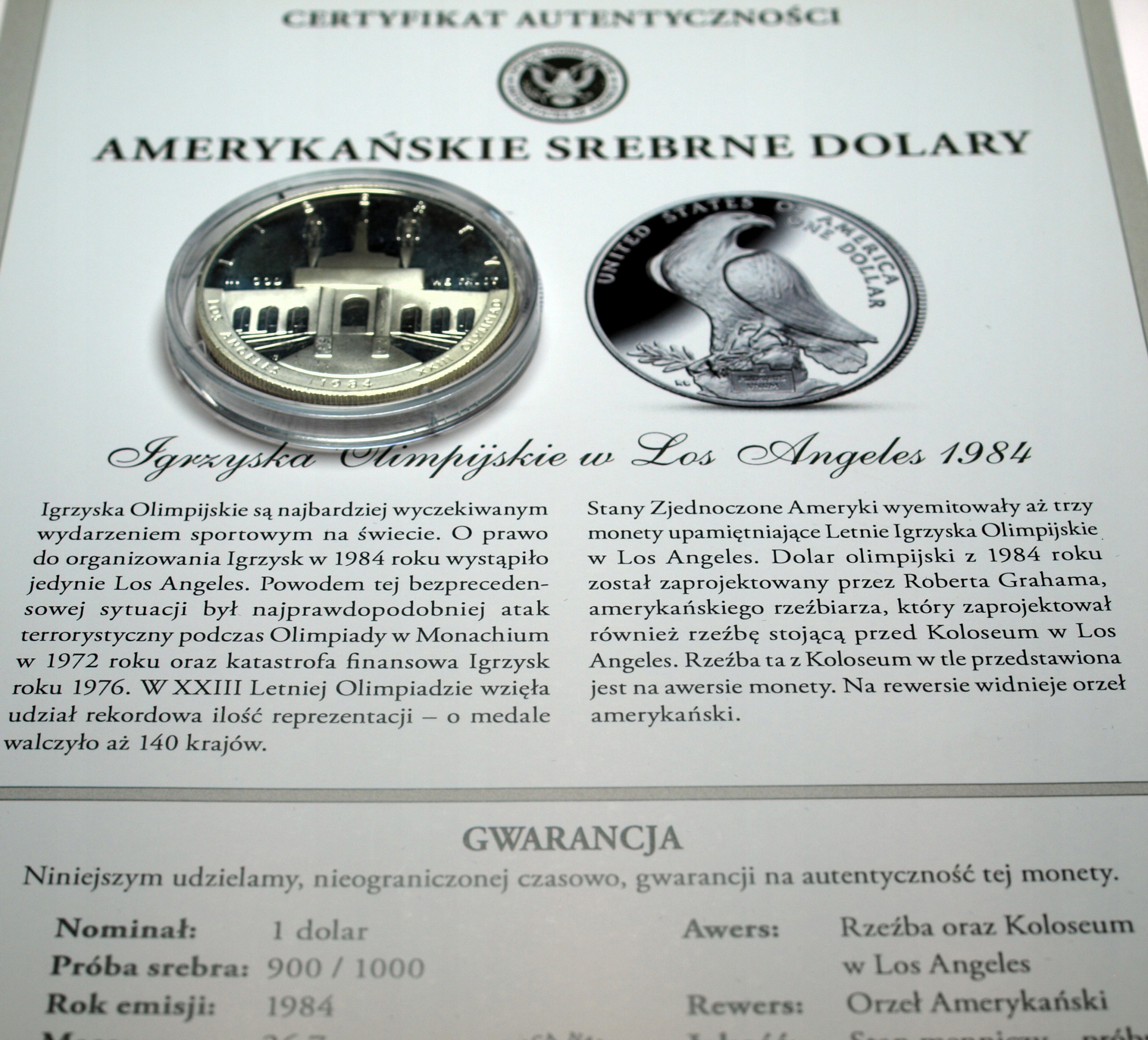 USA 1 dolar dollar 1984 Olimpiada Igrzyska Los Angeles Dolary SREBRO. ORYGINAŁ. SPRAWDŹ INNE AUKCJE - KOLEKCJONUJ RZADKIE WALORY Z NUMIZMATO!