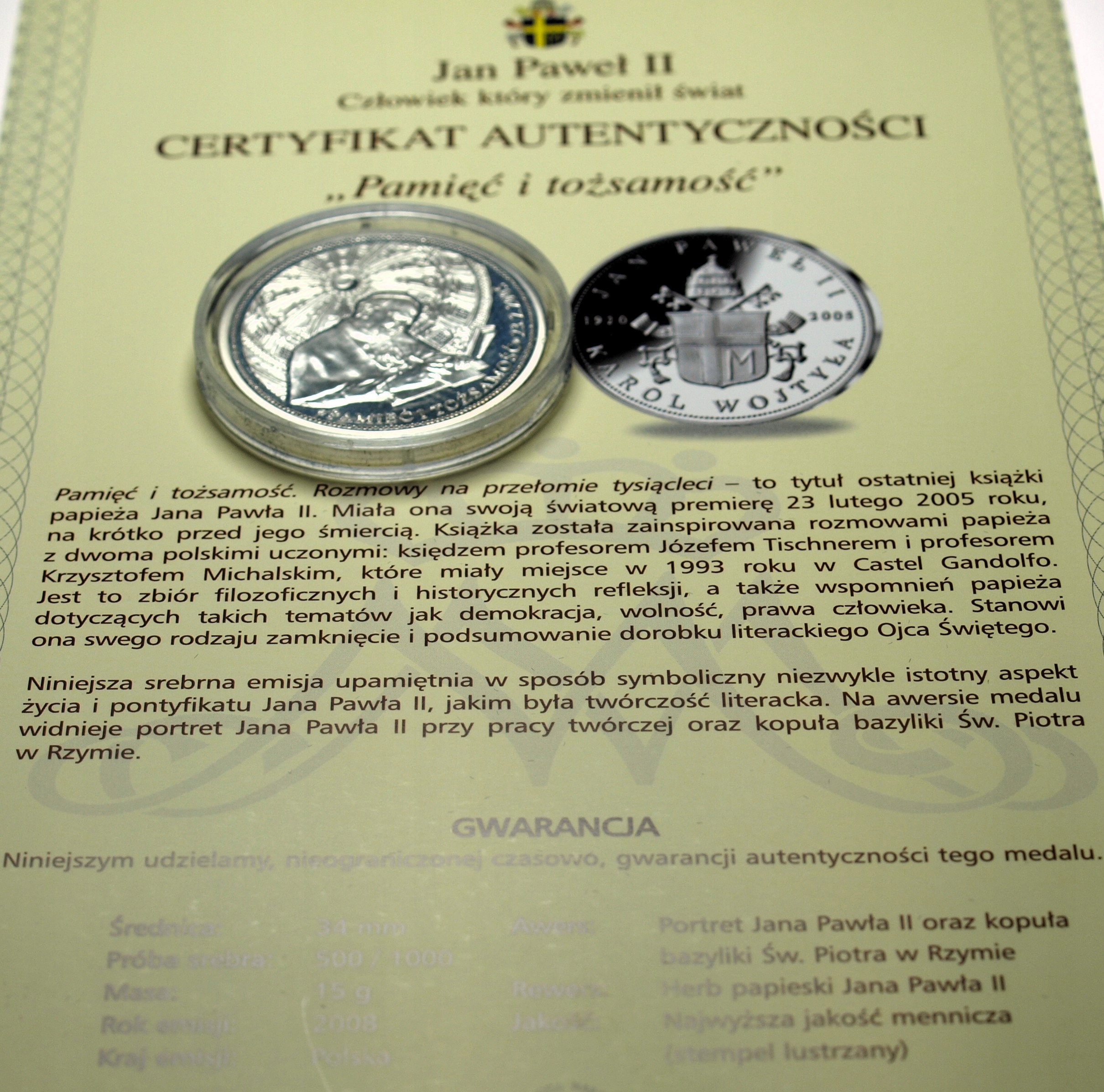 Jan Paweł II 2008 Pamięć i tożsamość Człowiek który zmienił Świat SREBRO