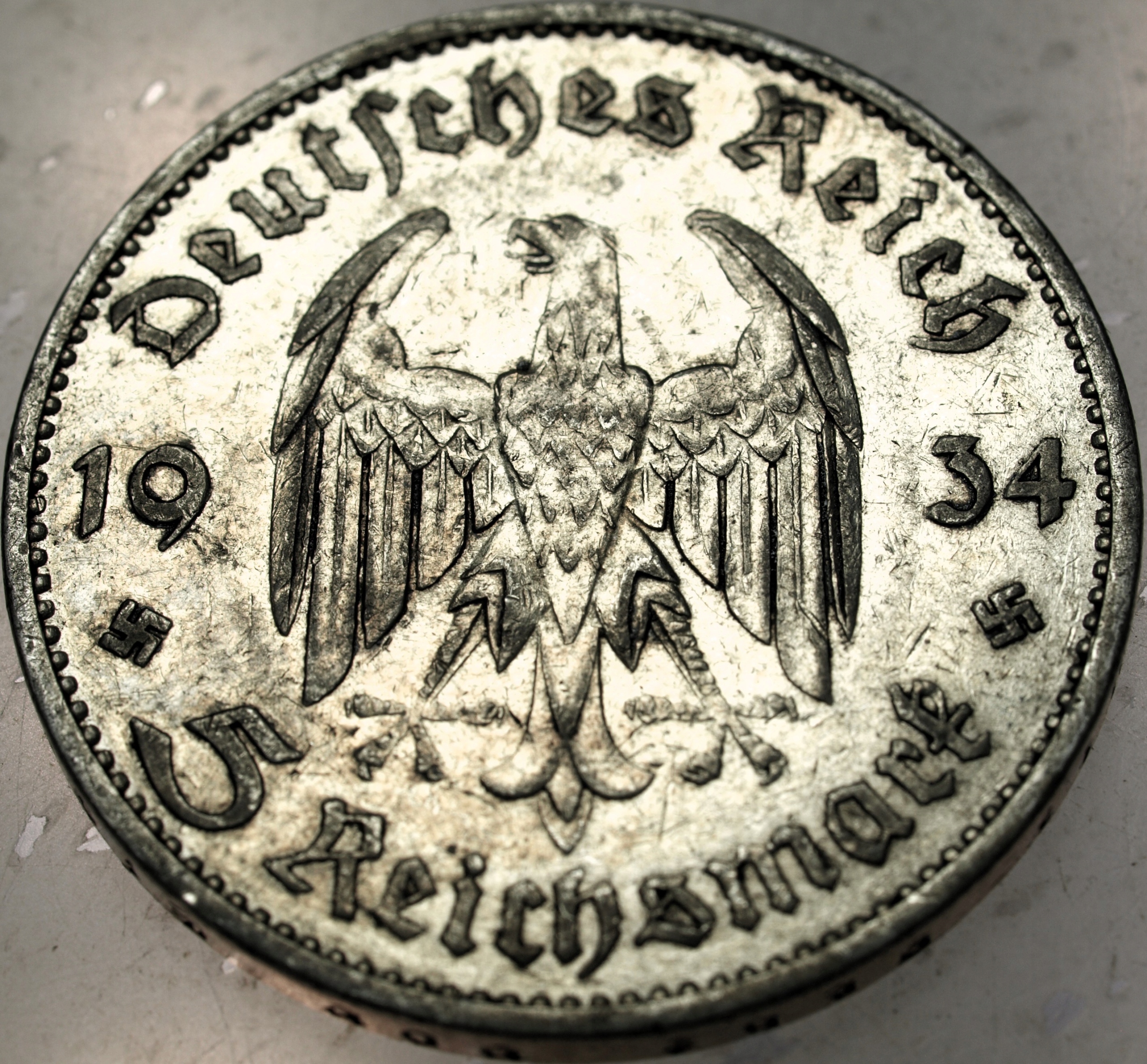 Niemcy 5 marek Reichsmark 1934 Kościół wieża SREBRO. ORYGINAŁ. SPRAWDŹ INNE AUKCJE - KOLEKCJONUJ RZADKIE WALORY Z NUMIZMATO!
