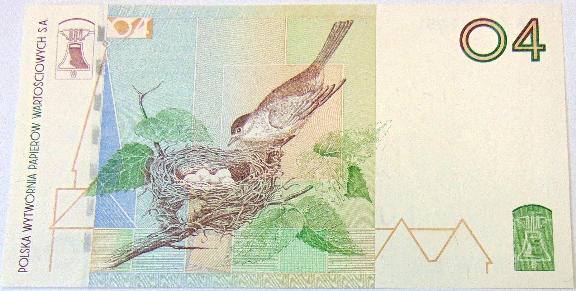 2004 banknot testowy Pokrzewka czarnołbista PTASZKI PWPW (nr 1). ORYGINAŁ. SPRAWDŹ INNE AUKCJE - KOLEKCJONUJ RZADKIE WALORY Z NUMIZMATO!
