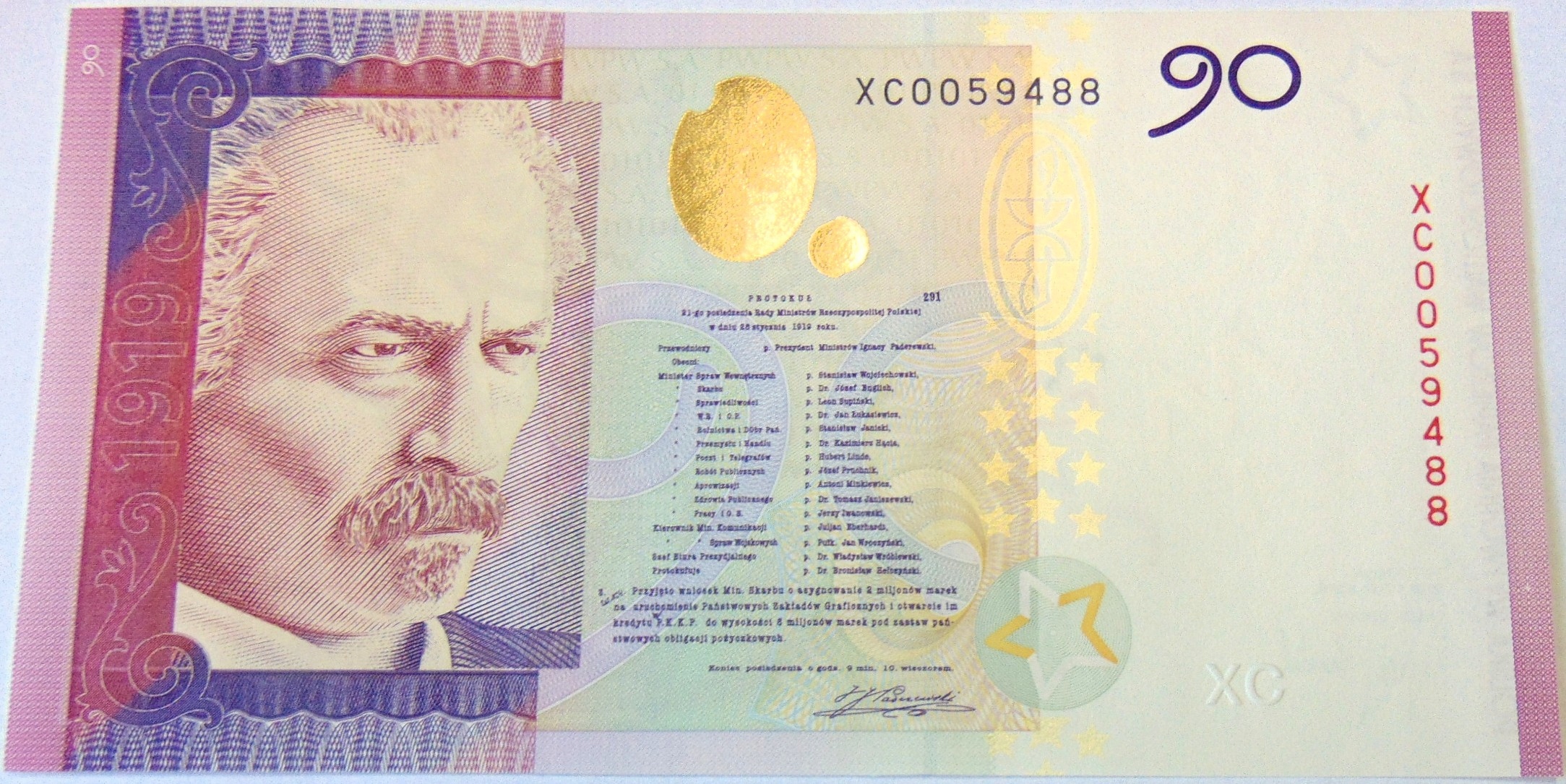 Banknot testowy PWPW S.A. PADEREWSKI 90, 2009. ORYGINAŁ. SPRAWDŹ INNE AUKCJE - KOLEKCJONUJ RZADKIE WALORY Z NUMIZMATO!