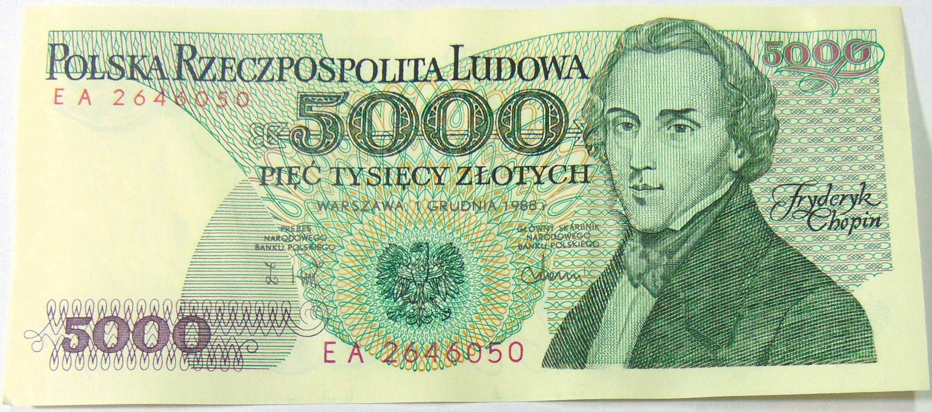 1988 5000 zł pięć tysięcy złotych Seria EA 2646050 Chopin banknot