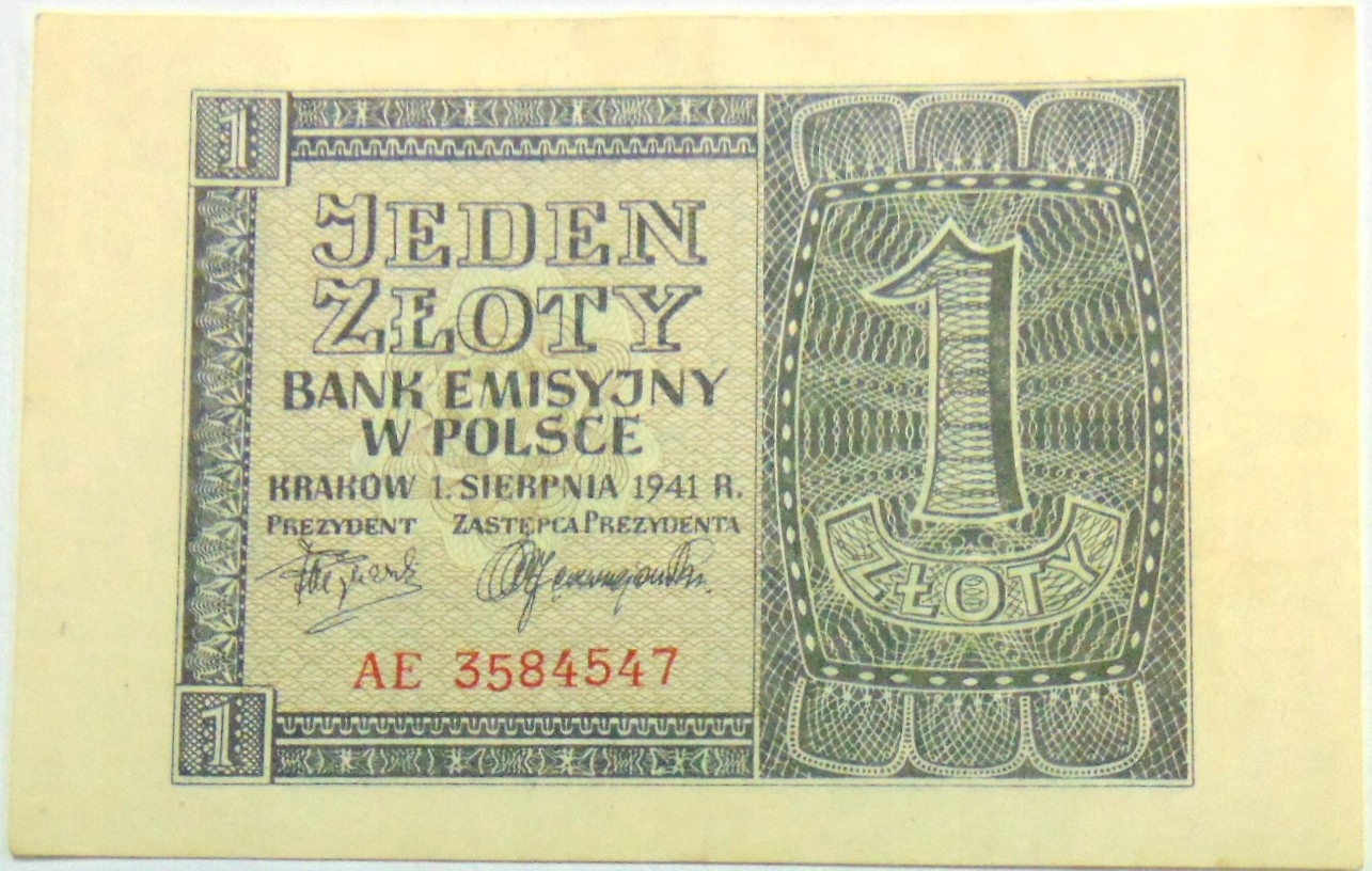 1941 1 zł Jeden Złoty, banknot seria AE. ORYGINAŁ. SPRAWDŹ INNE AUKCJE - KOLEKCJONUJ RZADKIE WALORY Z NUMIZMATO!