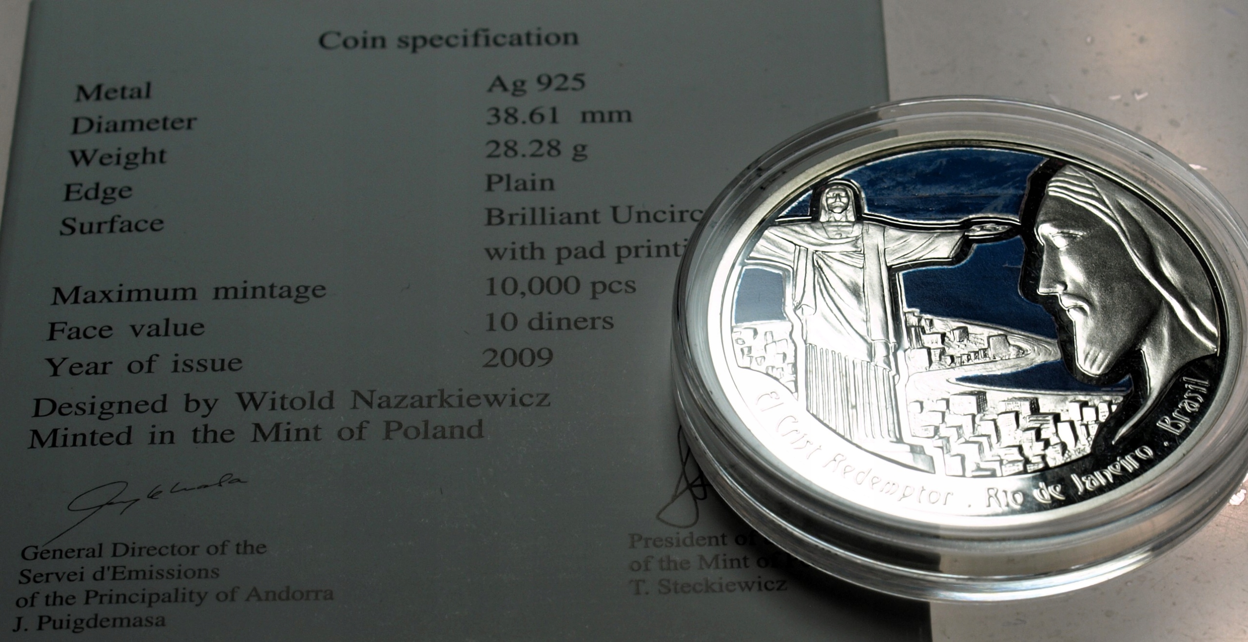 Andora 10 dinarów diners 2009 Chrystus z Rio de Janeiro Cuda Świata SREBRO. ORYGINAŁ. SPRAWDŹ INNE AUKCJE - KOLEKCJONUJ RZADKIE WALORY Z NUMIZMATO!