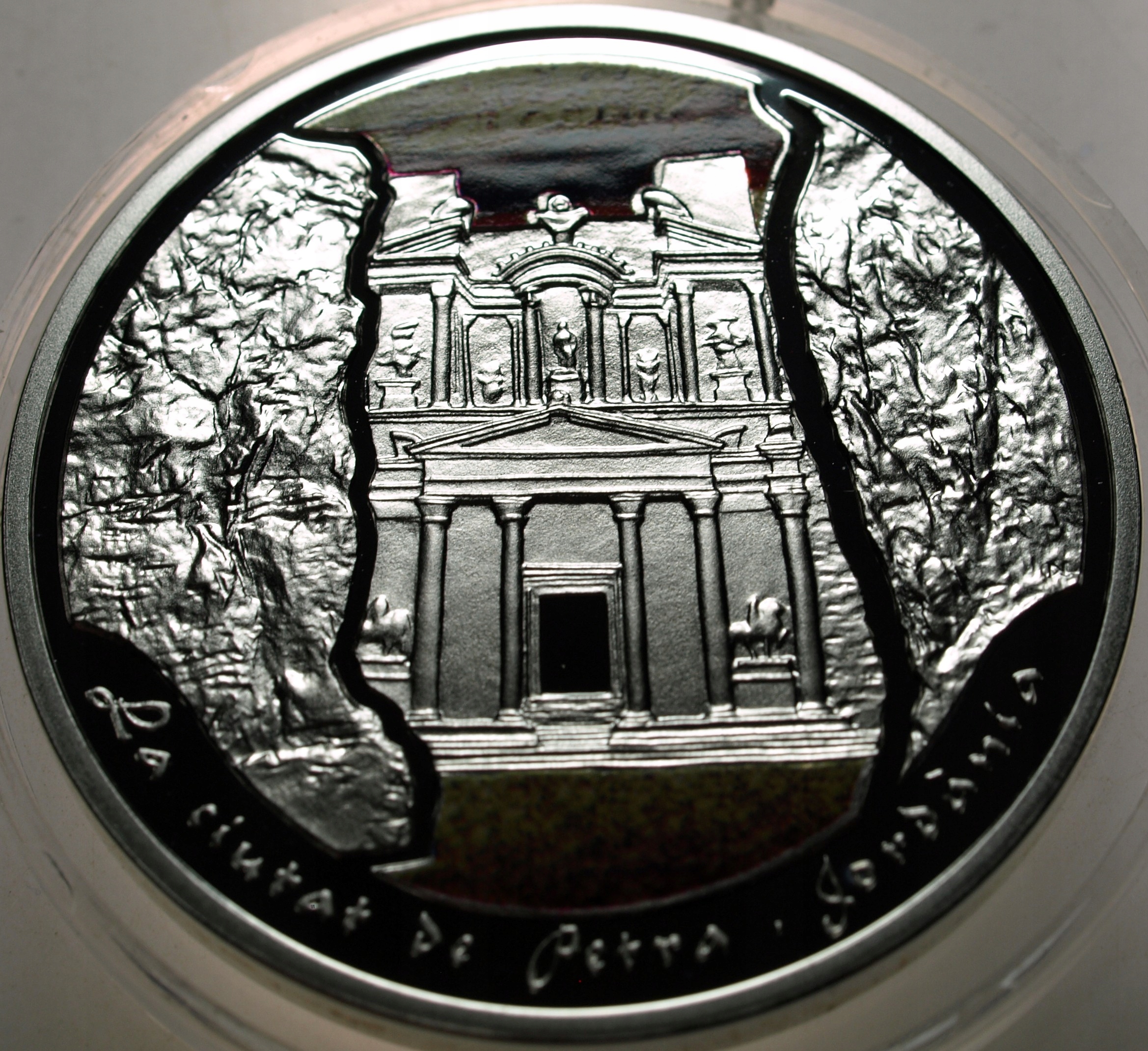 Andora 10 dinarów diners 2009 Petra Jordania Cuda Świata SREBRO