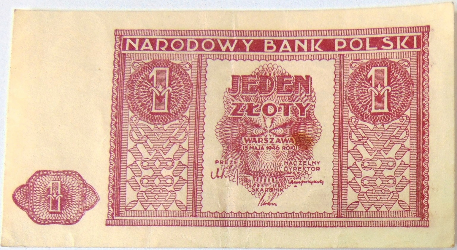 1946 1 zł banknot o nominale jeden złoty (nr 2). ORYGINAŁ. SPRAWDŹ INNE AUKCJE - KOLEKCJONUJ RZADKIE WALORY Z NUMIZMATO!