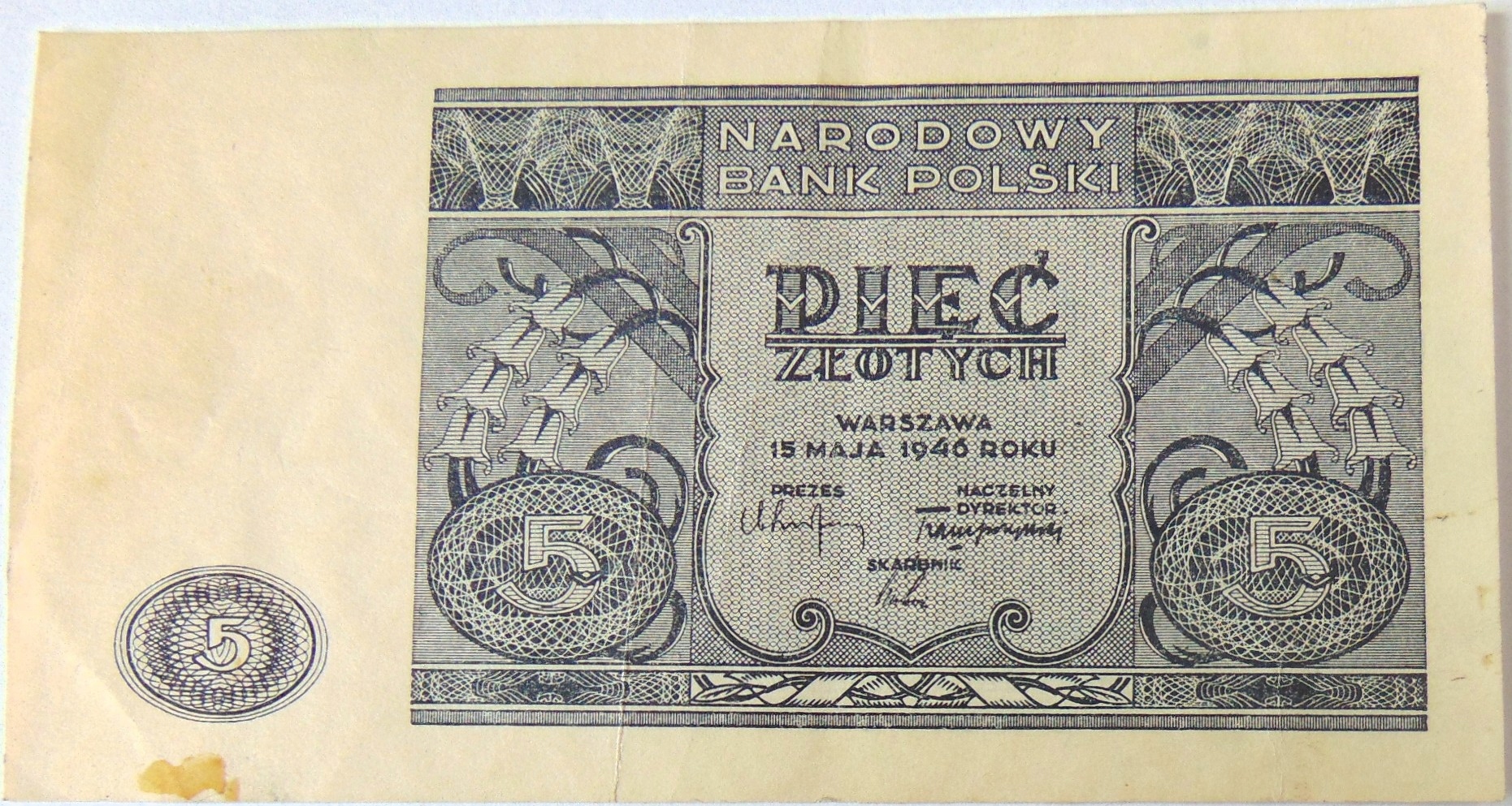 1946 5 zł banknot pięć złotych (nr 1). ORYGINAŁ. SPRAWDŹ INNE AUKCJE - KOLEKCJONUJ RZADKIE WALORY Z NUMIZMATO!