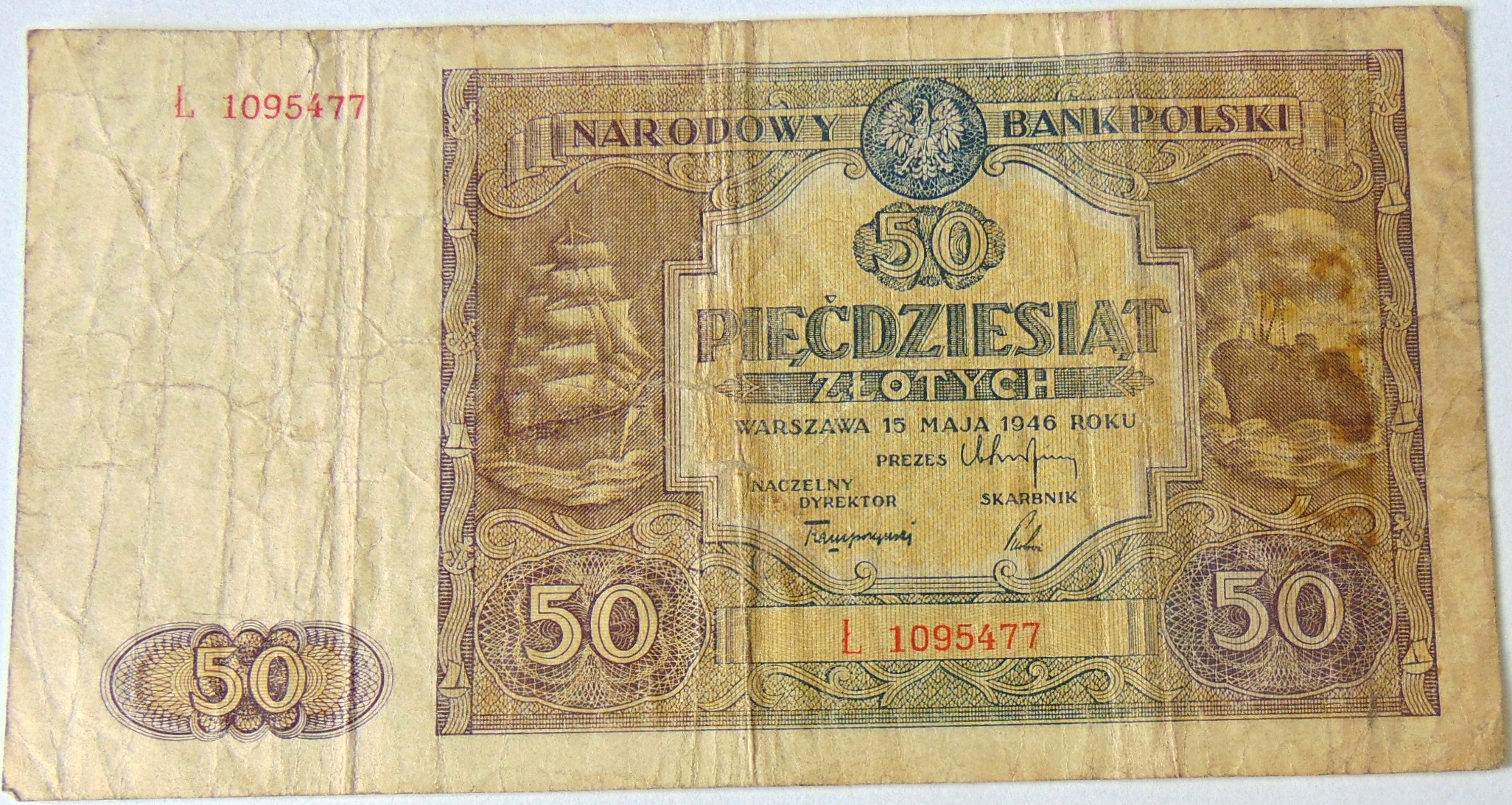 1946 50 zł pięćdziesiąt złotych, banknot seria Ł