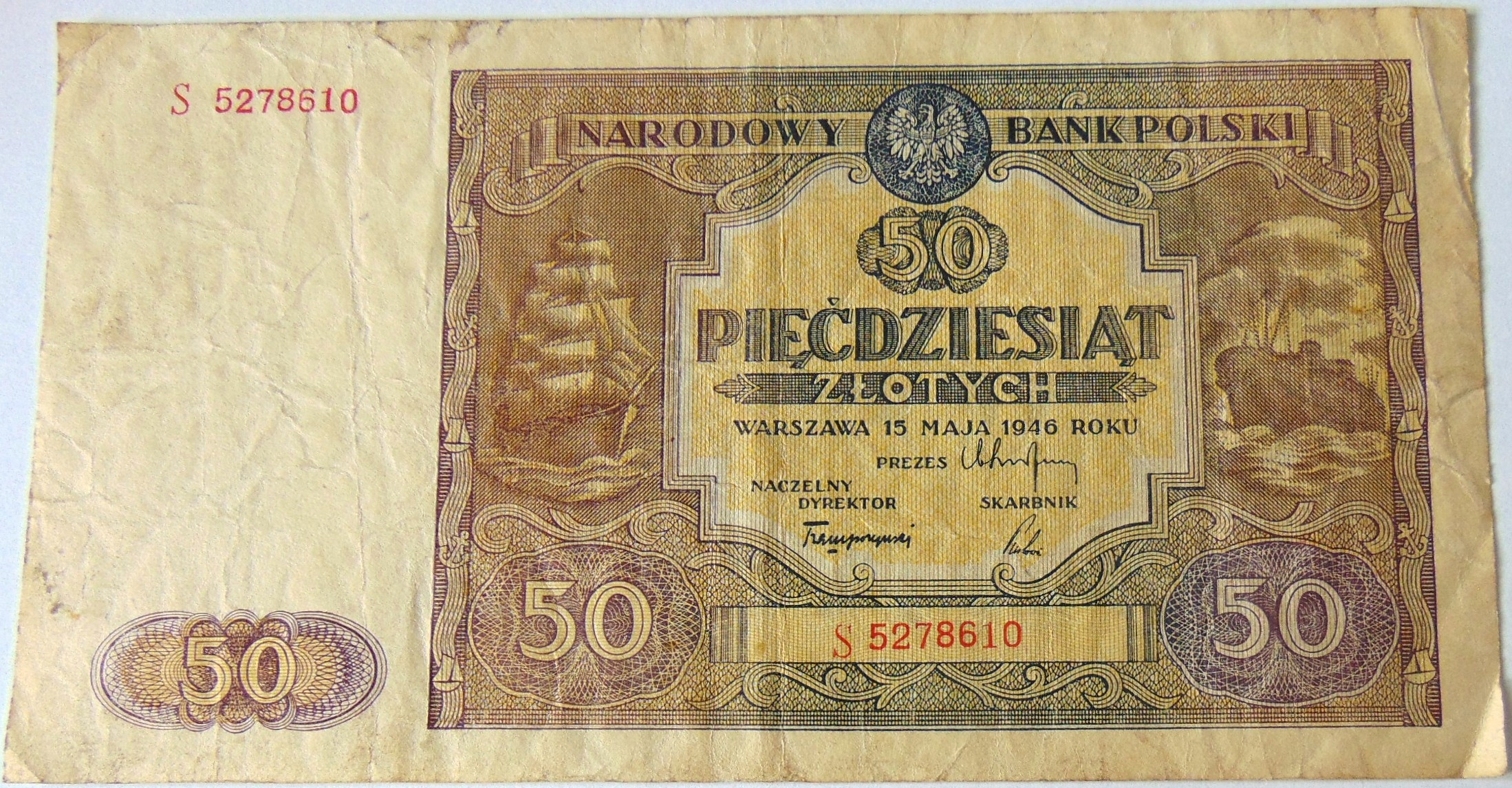 1946 50 zł pięćdziesiąt złotych, banknot seria S. ORYGINAŁ. SPRAWDŹ INNE AUKCJE - KOLEKCJONUJ RZADKIE WALORY Z NUMIZMATO!