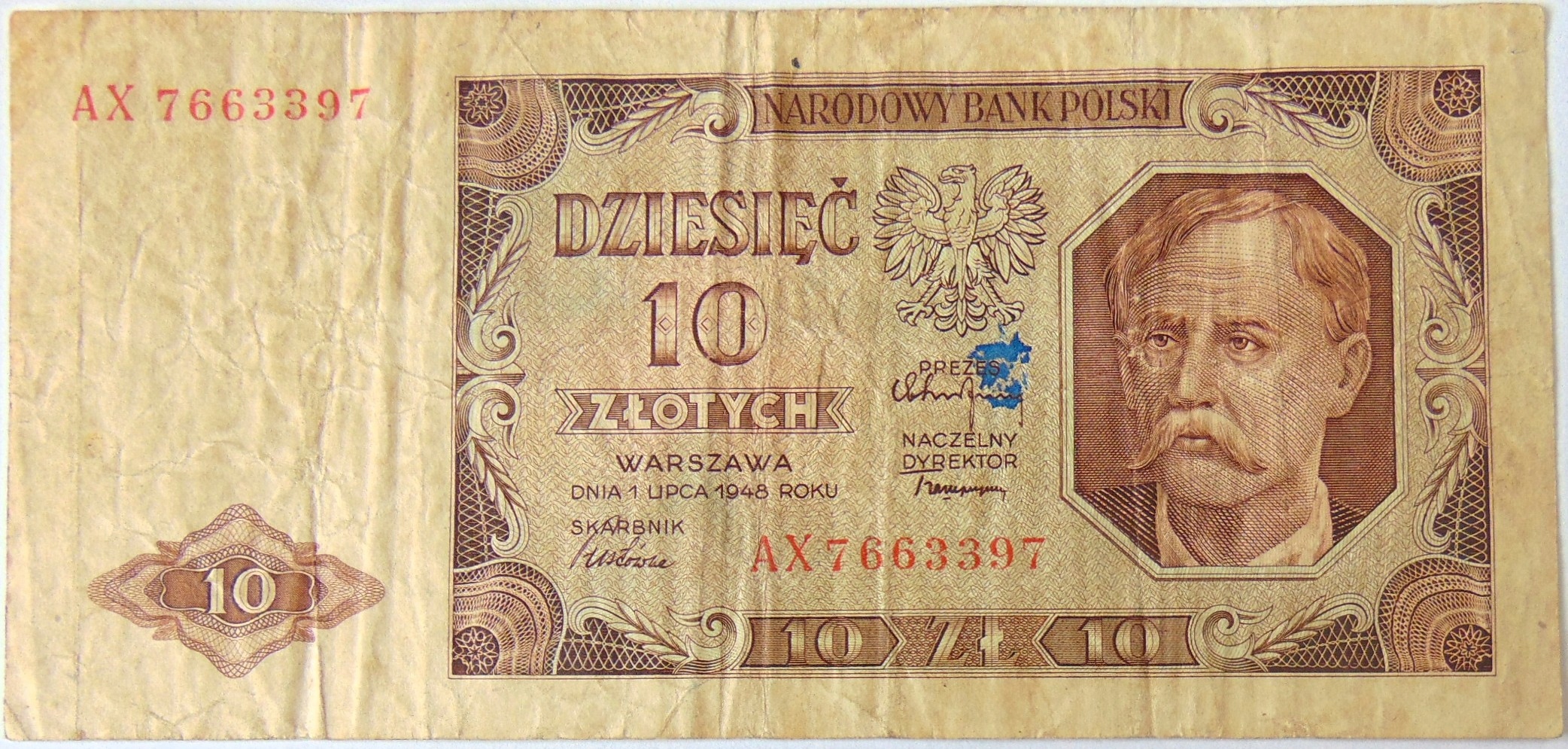 1948 10 zł Dziesięć Złotych, banknot seria AX