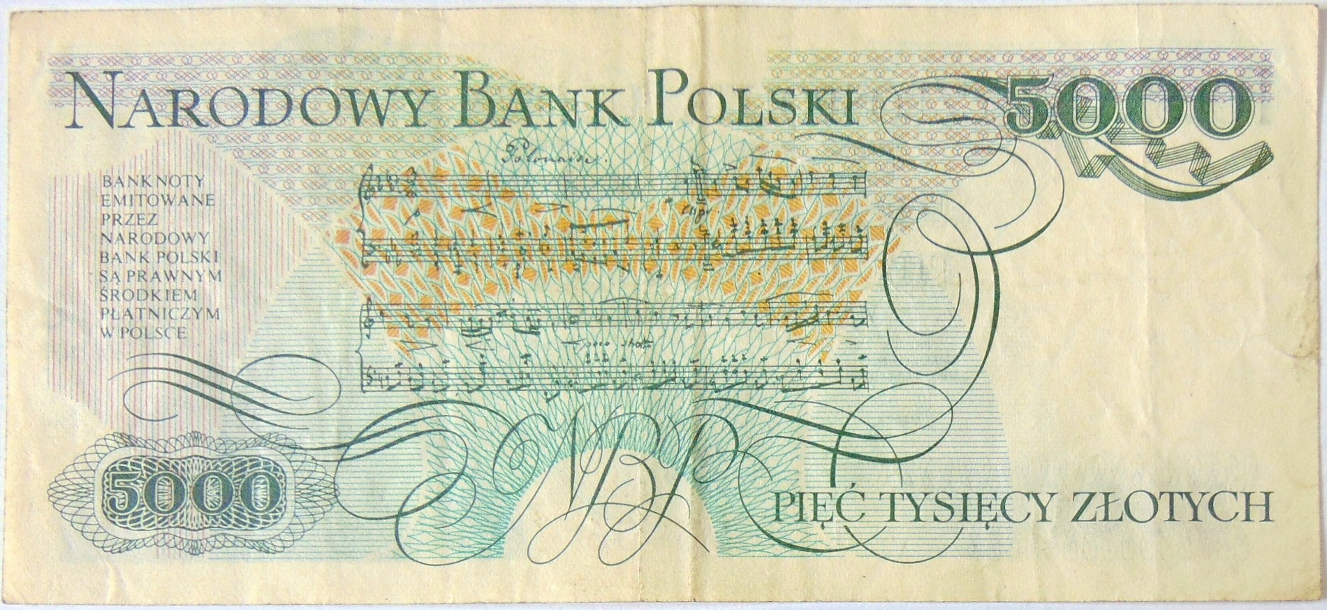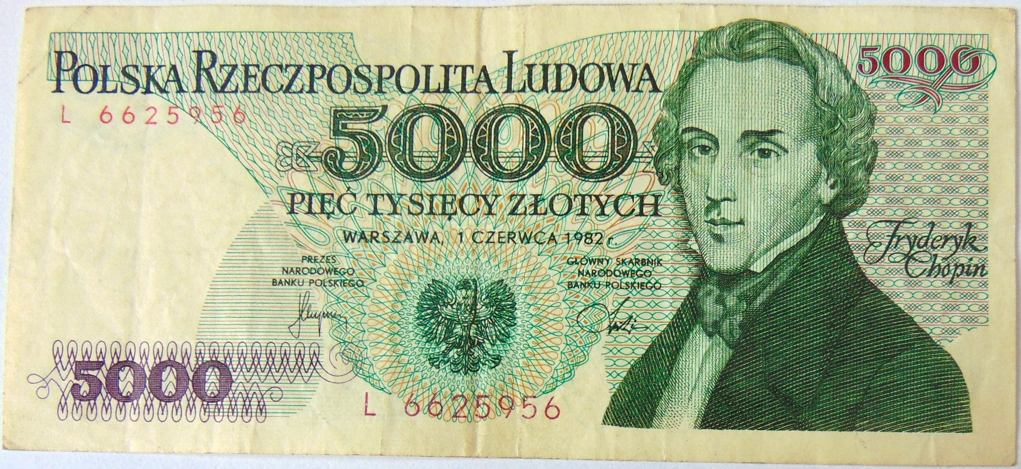 1982 5000 zł złotych Chopin seria L banknot (nr 2)