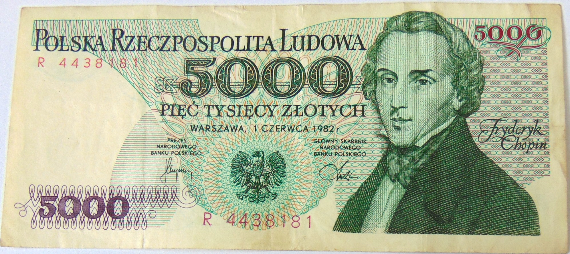 1982 5000 zł złotych Chopin seria R banknot (nr 1)
