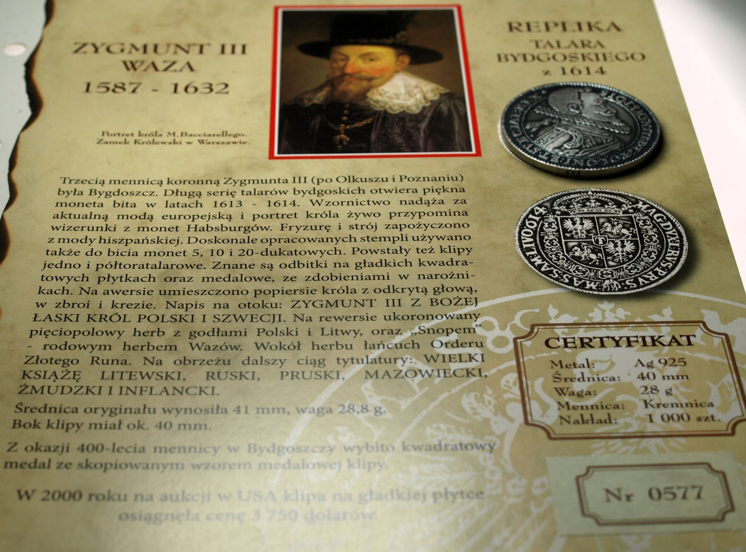 replika Talar Bydgoski 1614 Zygmunt III Waza Talary Polski Królewskiej Kremnica SREBRO. SPRAWDŹ INNE AUKCJE - KOLEKCJONUJ RZADKIE WALORY Z NUMIZMATO!