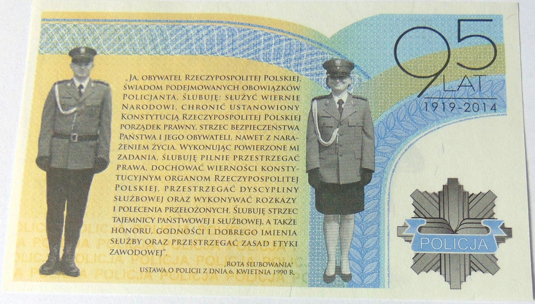 2014 Banknot testowy PWPW POLICJA 95 Lat Policji RZADKI (nr 2). ORYGINAŁ. SPRAWDŹ INNE AUKCJE - KOLEKCJONUJ RZADKIE WALORY Z NUMIZMATO!