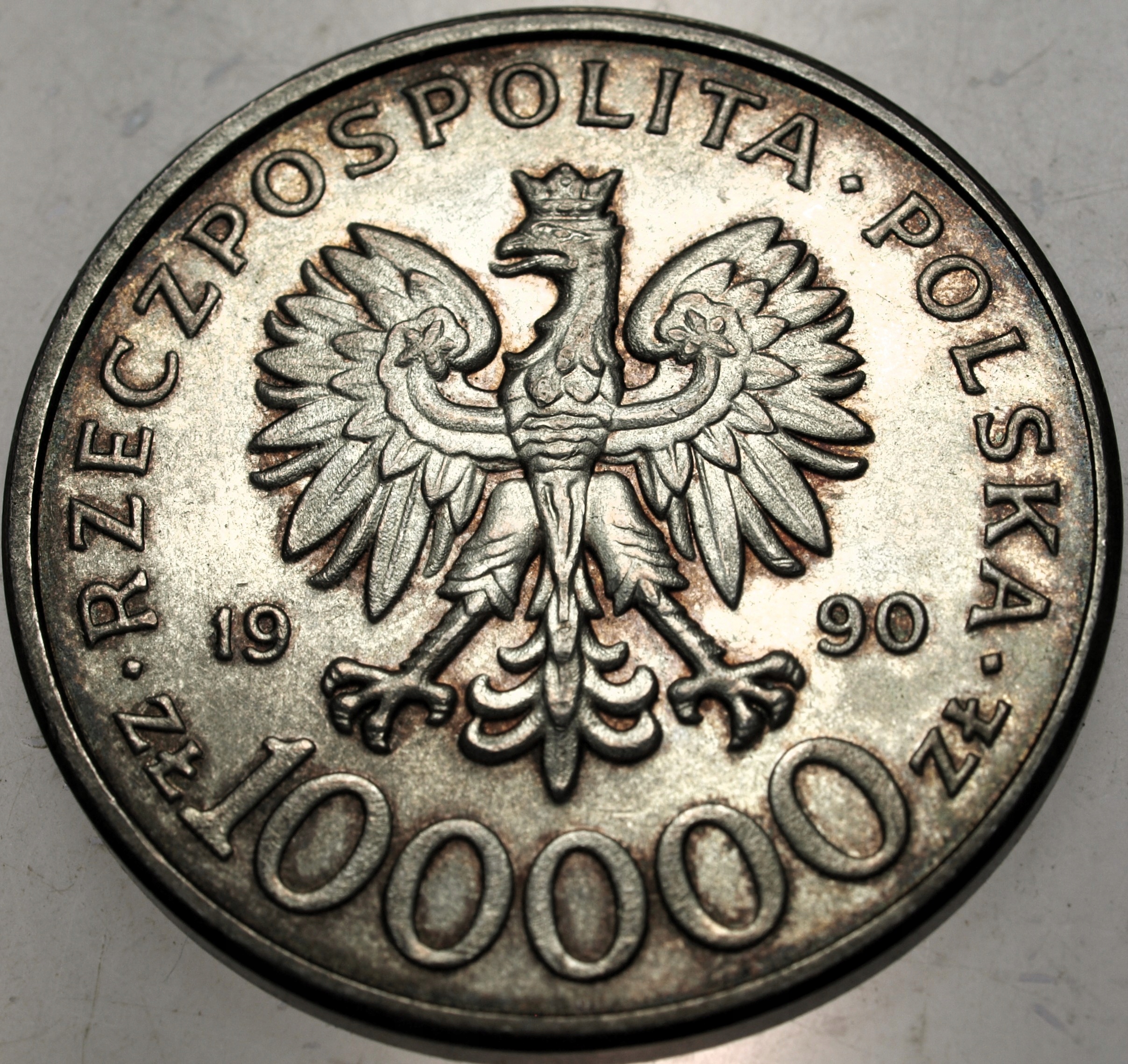 100000 zł złotych 1990 Solidarność TYP C 1 oz SREBRO RZADKA. ORYGINAŁ. SPRAWDŹ INNE AUKCJE - KOLEKCJONUJ RZADKIE WALORY Z NUMIZMATO!