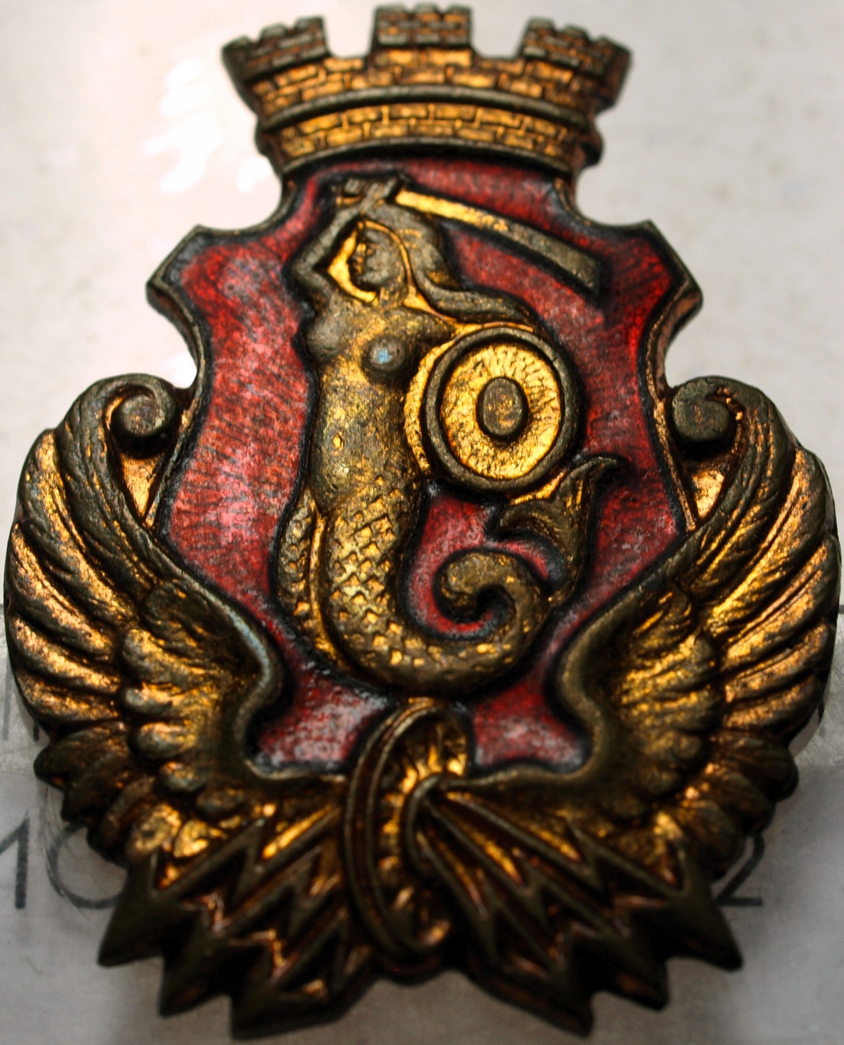 Odznaka przedstawiająca Syrenkę Warszawską. ORYGINAŁ. SPRAWDŹ INNE AUKCJE - KOLEKCJONUJ RZADKIE WALORY Z NUMIZMATO!